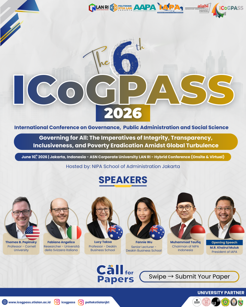 The Sixth International Conference on Governance, Public Administration, and Social Science (ICoGPASS 2026) invites scholars, researchers, practitioners, and students worldwide to join us on: