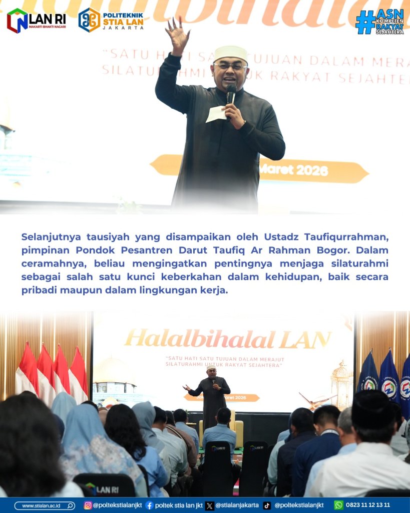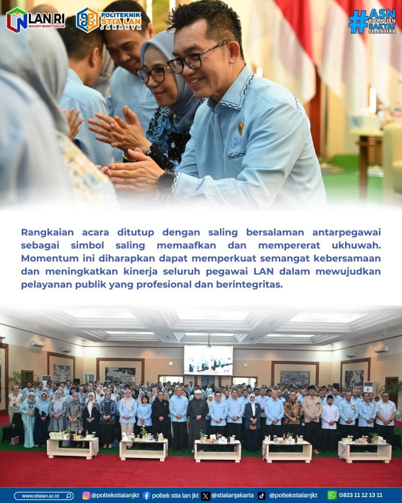 Lebih lanjut, Kepala LAN juga mengajak seluruh insan LAN untuk terus menjaga nilai-nilai kebersamaan, saling memaafkan, dan bekerja dengan satu hati serta tujuan yang sama dalam membangun bangsa.