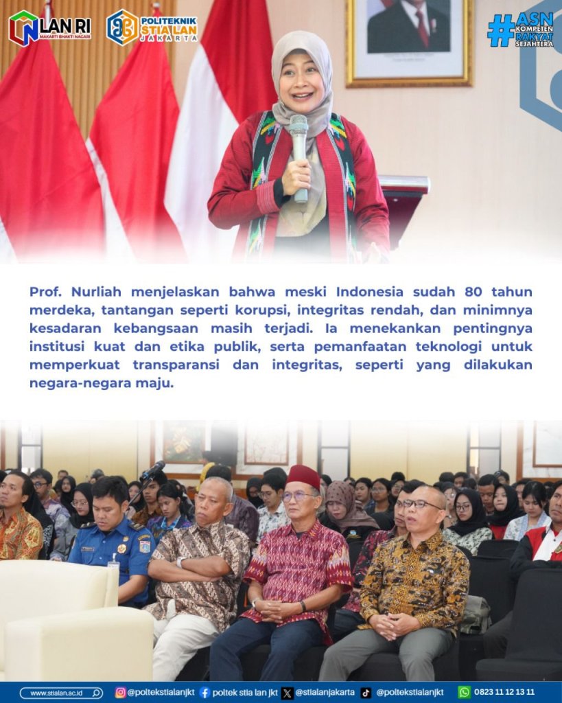 Untuk itu Prof. Nurliah memberikan solusi: 1) Moral, kekuatan moral dan tata kelola menentukan kemajuan, bukan sumber daya alam; 2) Etika, empat pilar harus menjadi pondasi etika pemerintahan digital, dan 3) inovasi, negara maju lahir dari investasi pada manusia, ilmu pengetahuan, dan birokrasi yang bersih.