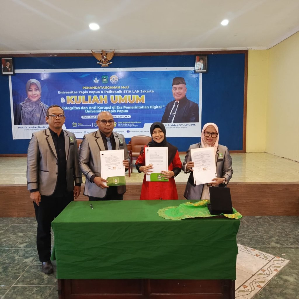 Jayapura, 11 Februari 2026 – Politeknik STIA LAN Jakarta resmi memperkuat jejaring akademik dengan Universitas YAPIS Papua melalui penandatanganan Nota Kesepahaman (MoU) kerja sama antarperguruan tinggi yang dilaksanakan di Kampus Universitas YAPIS Papua, Selasa (11/2).