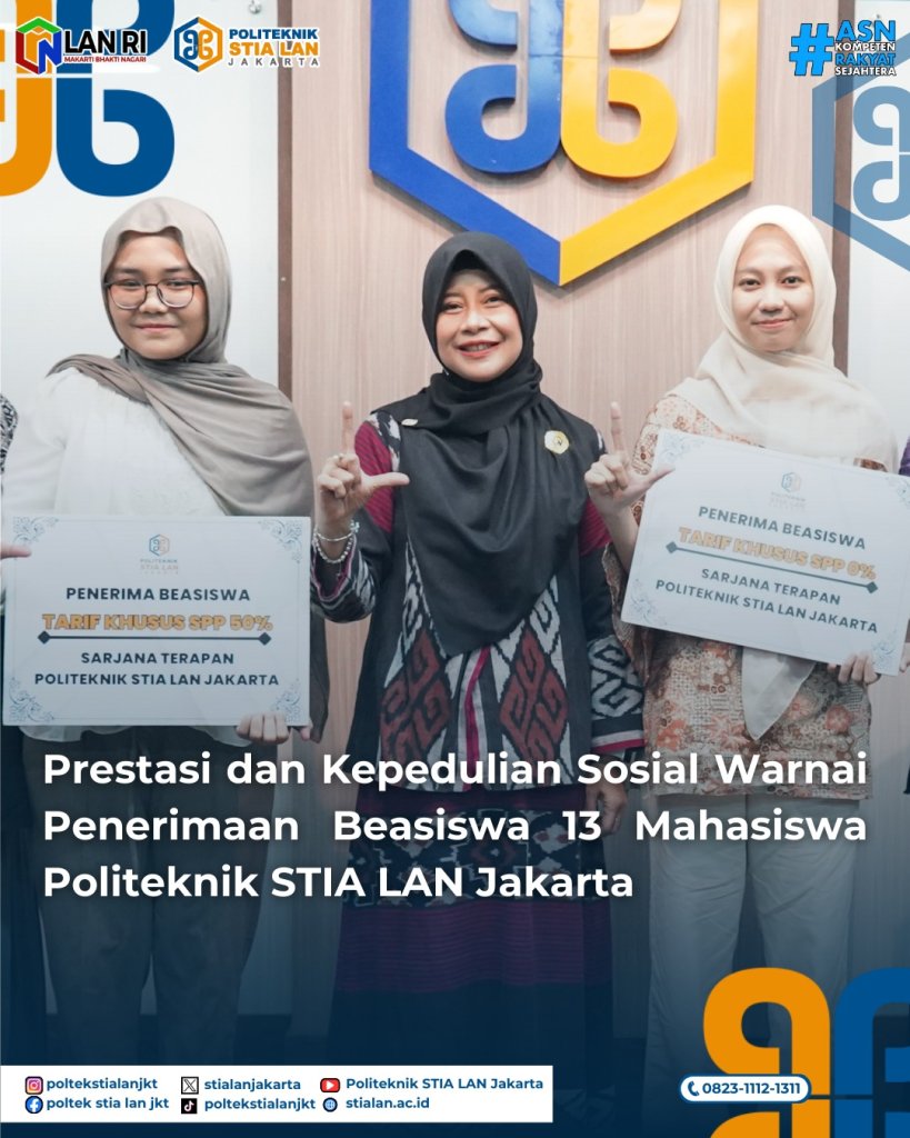 Dengan adanya program beasiswa ini, Politeknik STIA LAN Jakarta menegaskan perannya sebagai institusi pendidikan vokasi yang tidak hanya berorientasi pada kualitas lulusan, tetapi juga pada pemerataan akses pendidikan tinggi bagi seluruh lapisan masyarakat.