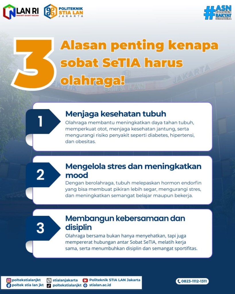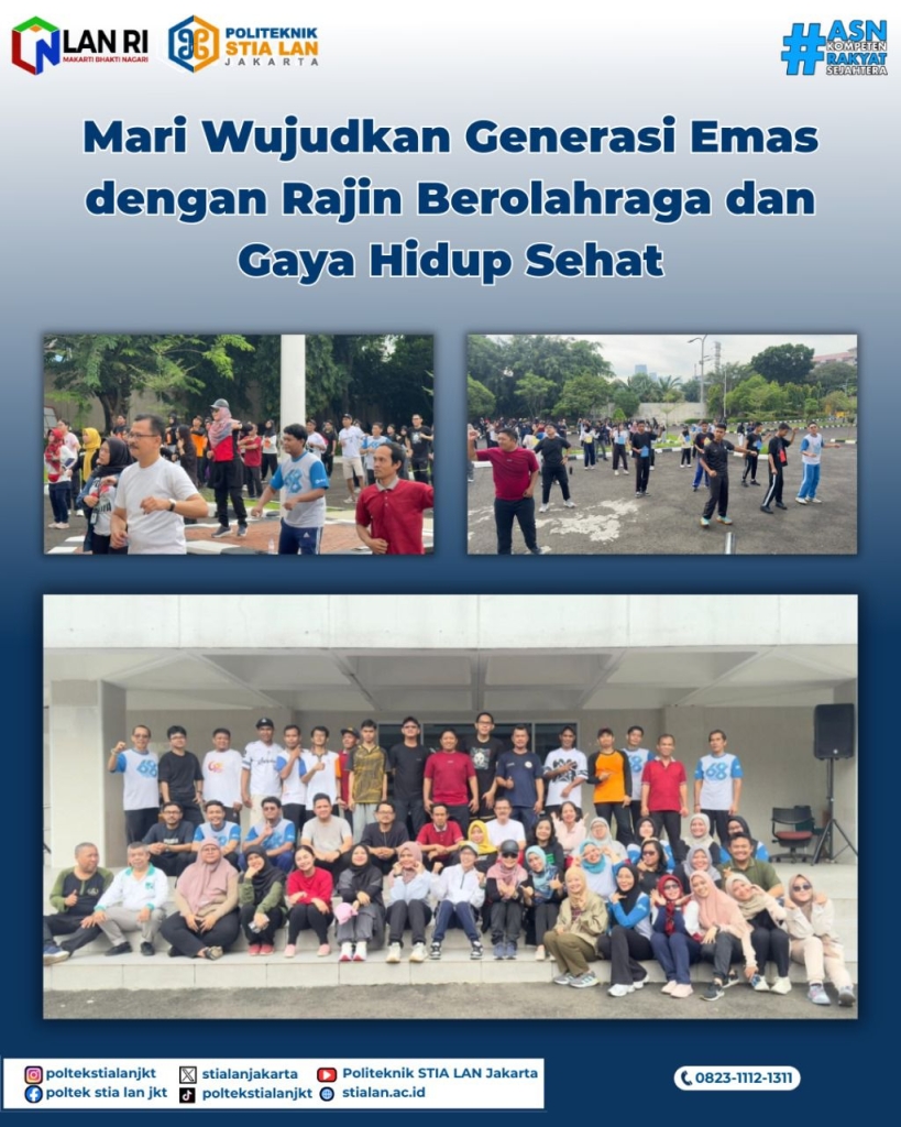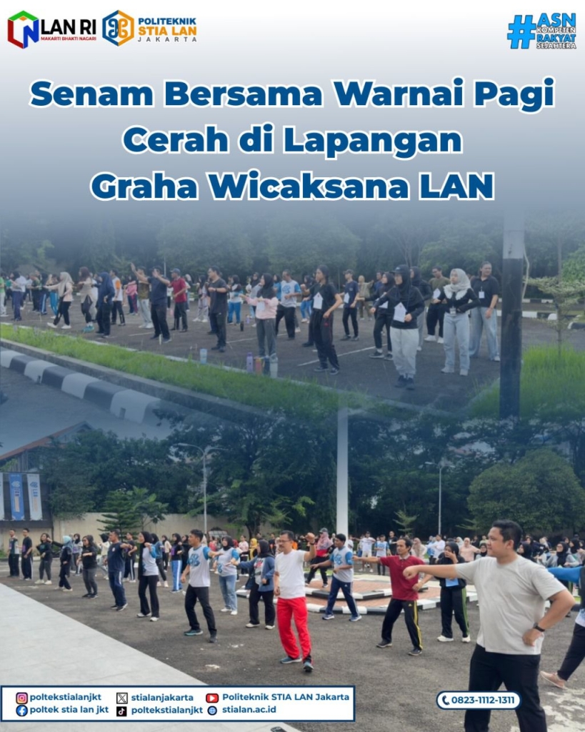 Jakarta, 3 Oktober 2025 – Ratusan peserta memadati Halaman Gedung Graha Wijaksana LAN Pejompongan pagi ini untuk mengikuti senam bersama yang digelar guna meningkatkan kesadaran hidup sehat sekaligus mempererat kebersamaan civitas akademika Politeknik STIA LAN Jakarta dan pegawai Satker LAN lainnya.