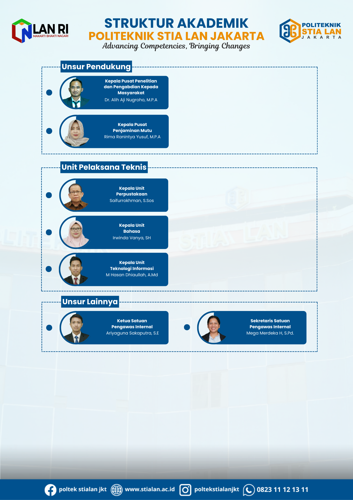 Struktur Akademik Struktur Akademik UNSUR PELAKSANA AKADEMIK POLITEKNIK STIA LAN JAKARTA Unsur Pendukung, Unit Pelaksana Teknis dan Unsur Lainnya