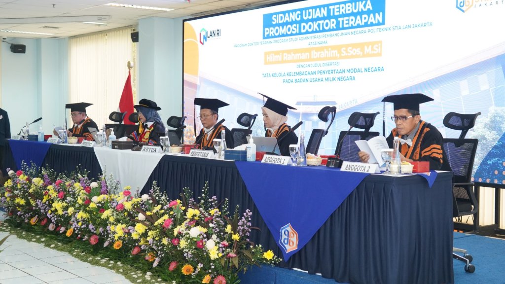 Jakarta — Politeknik STIA LAN Jakarta menggelar Sidang Ujian Terbuka Promosi Doktor Terapan Program Studi Administrasi Pembangunan Negara pada 29 Desember 2025 di Ruang Serbaguna Politeknik STIA LAN Jakarta. Sidang dilaksanakan dalam tiga sesi, dengan sesi ketiga menghadirkan promovendus Hilmi Rahman Ibrahim, S.Sos., M.Si.